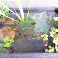 旧ヤゴ御殿の浮草や水草を減らしてベランダおいていたら、その中からヤゴ歩いてるの発見して慌ててヤゴをヤゴ御殿へ